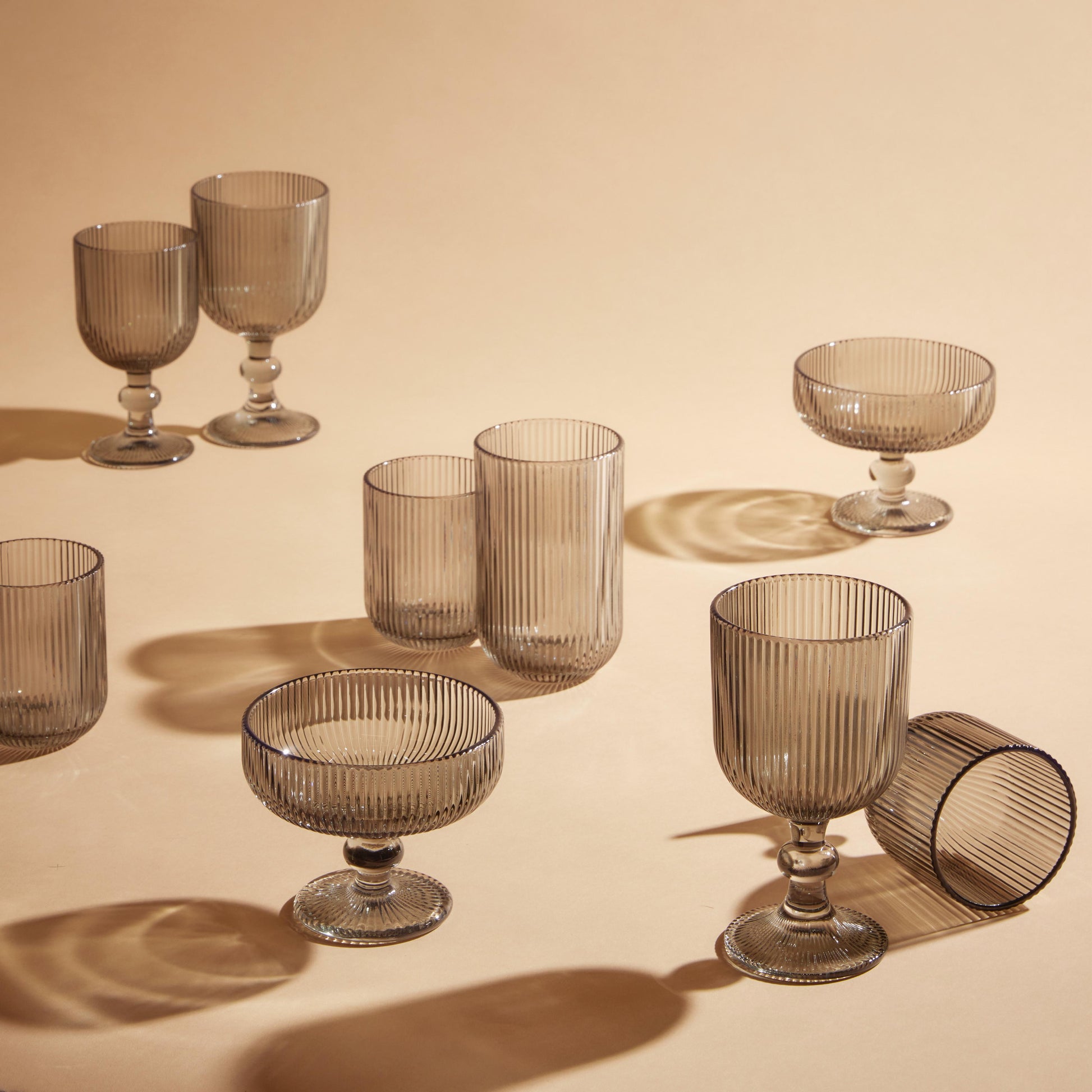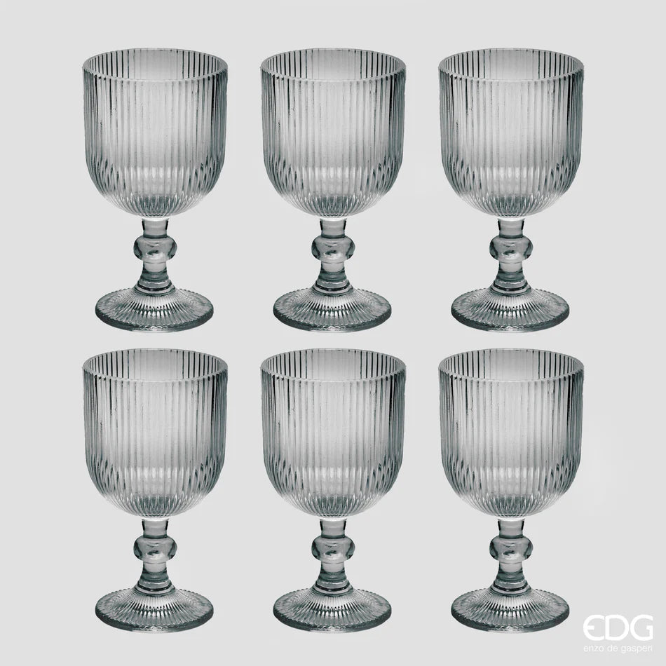 EDG Enzo De Gasperi - Set 6 Calici Acqua Righe H14 D8 cm Grigio Fumè