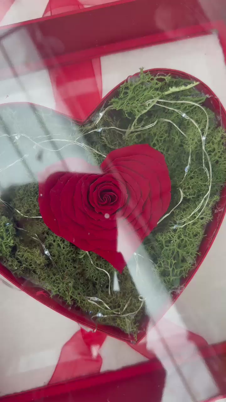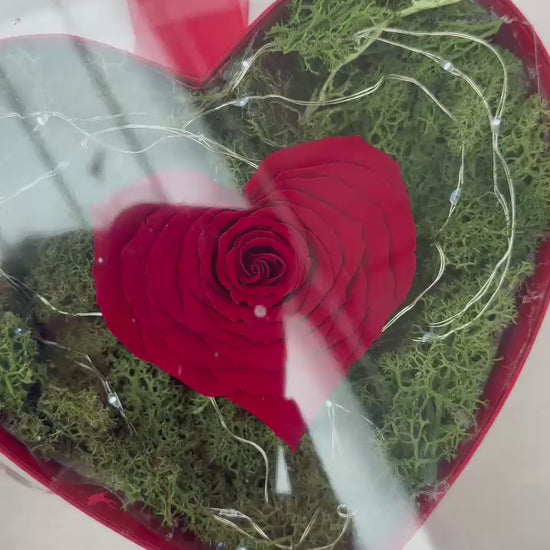 Beautiful box with a heart-shaped rose illuminated by a LED wire. A unique, original idea that will make your loved one's heart beat faster
