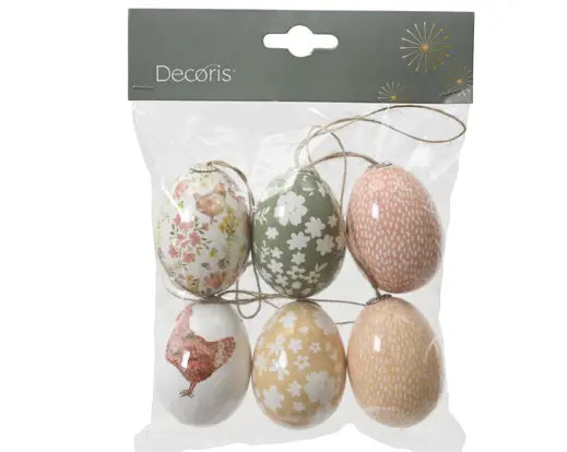Confezione con 6 uova mix con fantasie floreali e pasquali, ideale per decorare il tuo albero o per realizzare composizioni a tema
