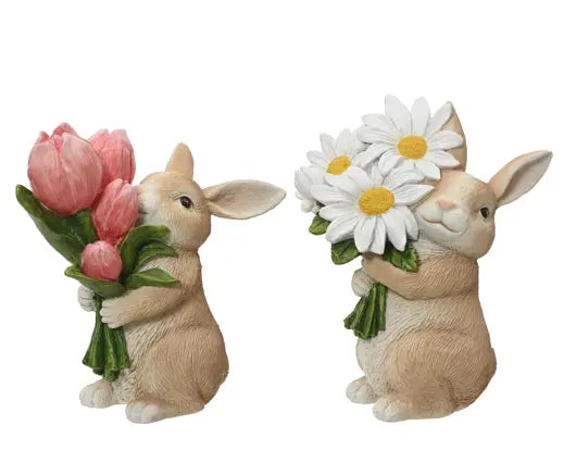 Coniglietto assortito in 2 modelli, con margherite o con tulipani, per decorare la rua casa con stile ed un fresco tocco primaverile, decora mobili, mensole e piccoli angoli, realizza composizioni a tema e goditi una ventata di primavera!
