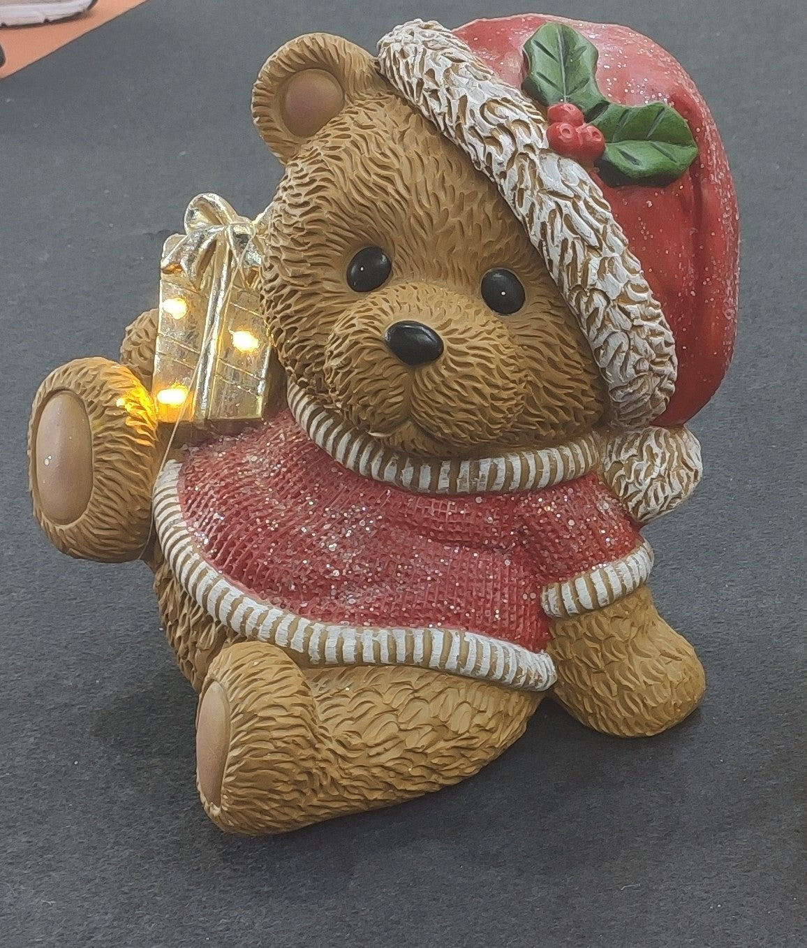 ORSETTO CM 28X22.5X29 MAGLIONCINO ROSSO E PACCO LUMINOSI