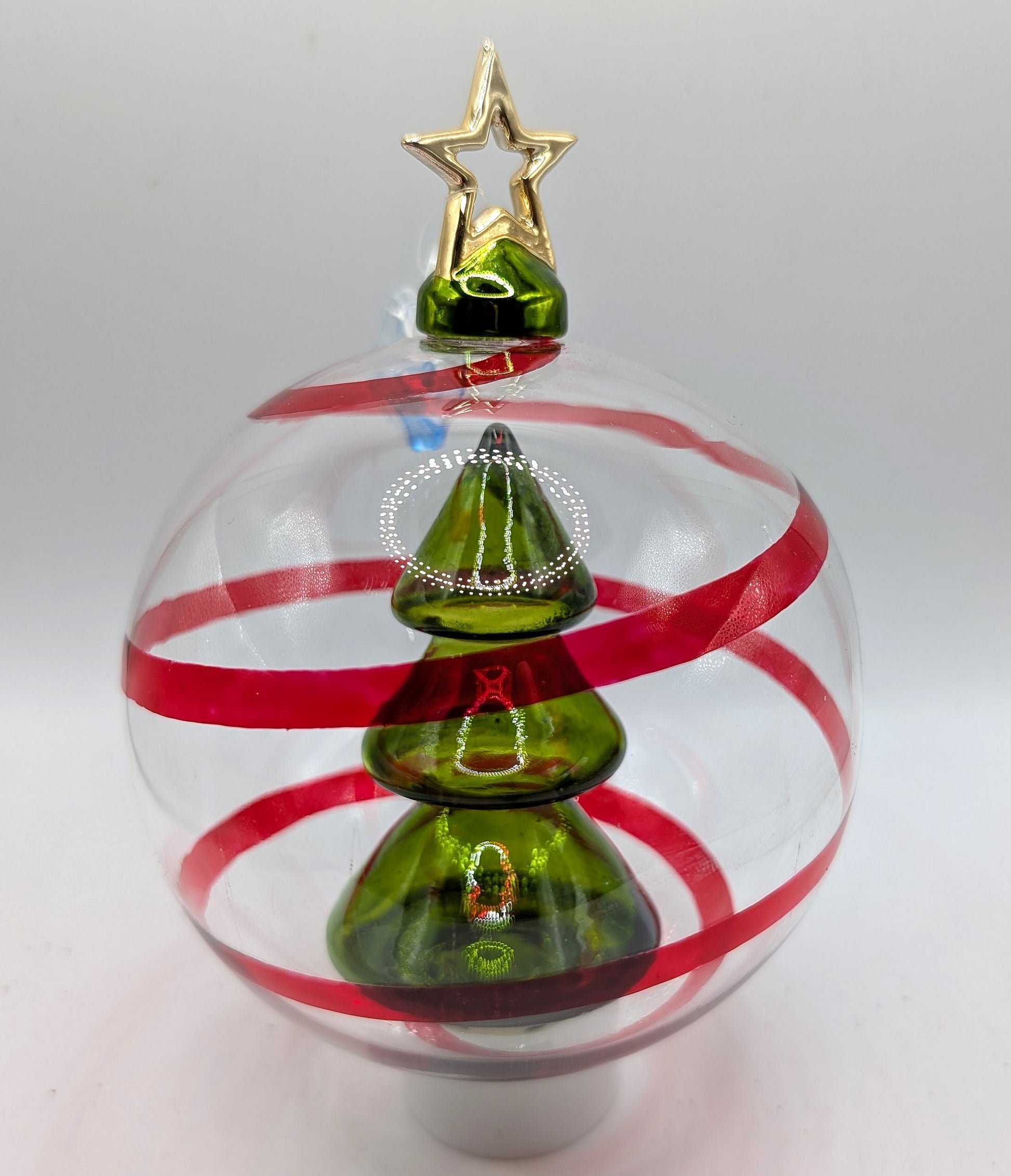 SFERA VETRO CM 10 ALBERO INTERNO E SPIRALE ROSSA - TOP STELLA PORCELLANA