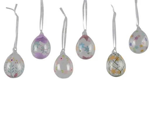 Mix uova in vetro con nastro, decori assortiti mix floreale, per decorare il tuo albero e la tua casa con un raffinato tocco pasquale.
