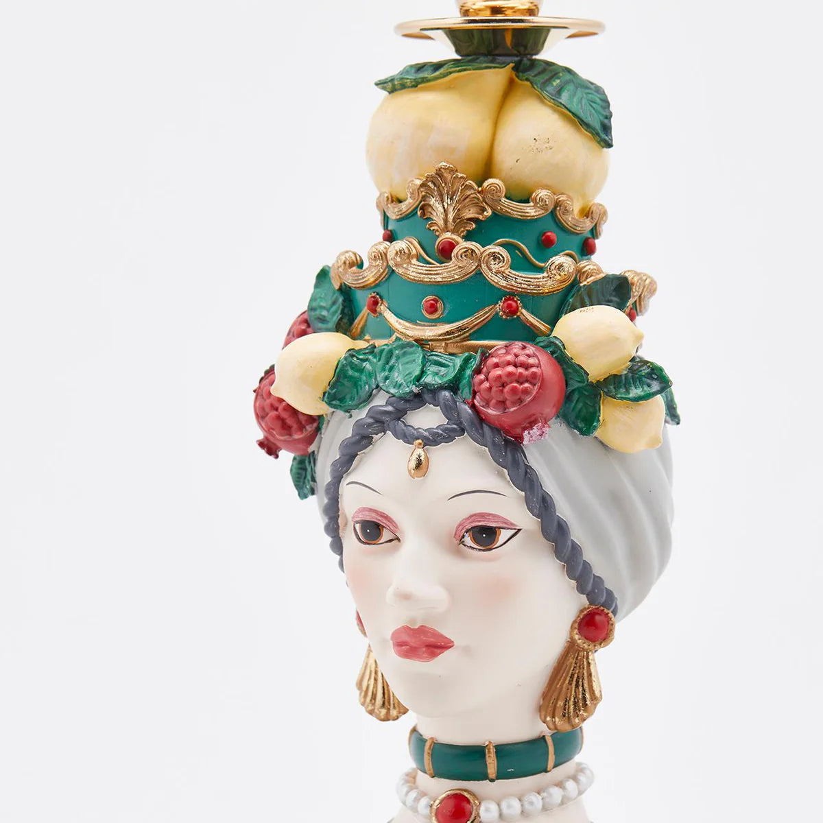 Il portacandela Testa di Moro Sicily di Enzo De Gasperi, è qui proposto nella sua versione femminile, in veste verde.