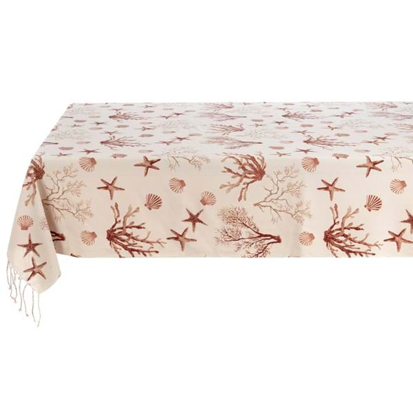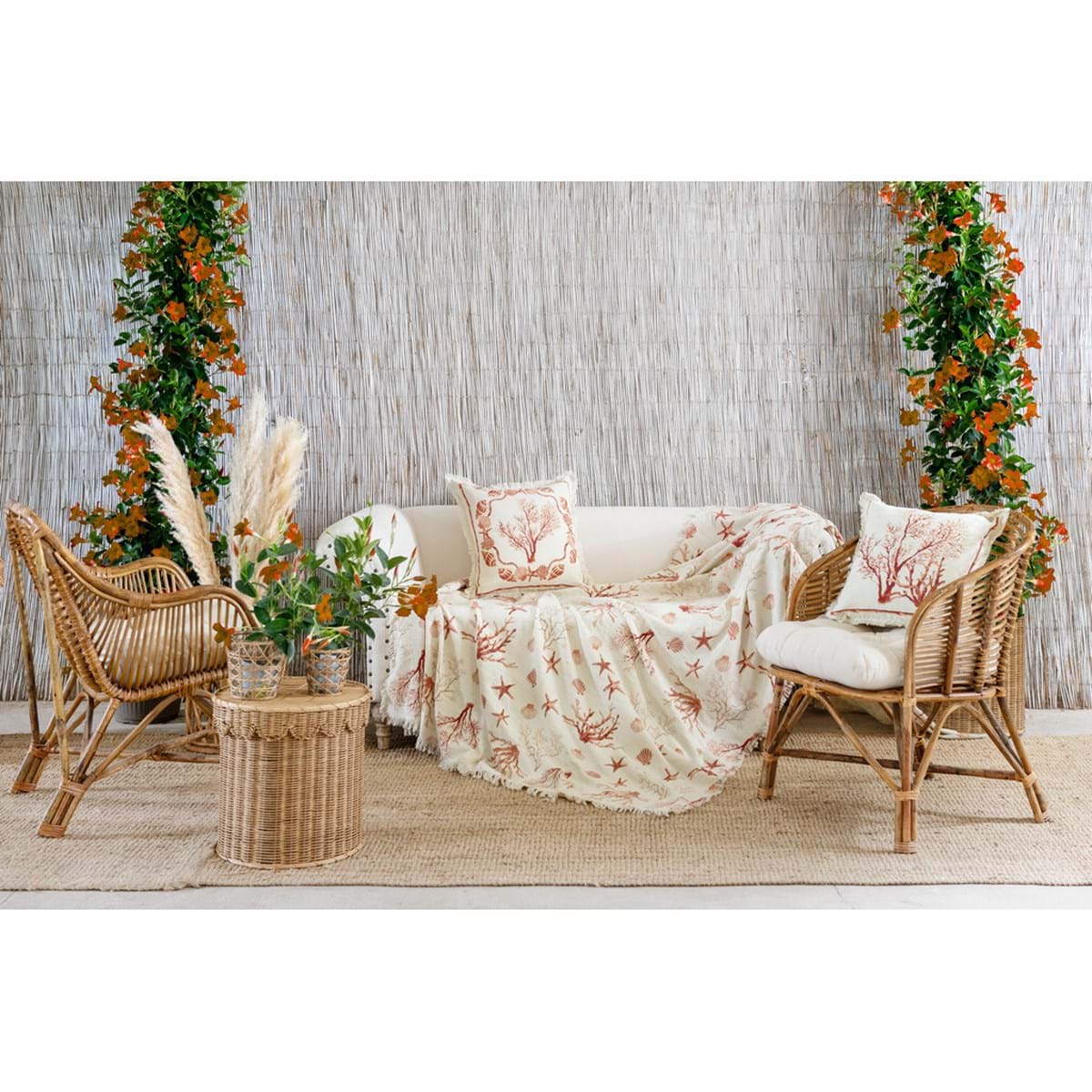 Porta in casa il profumo del mare con questo copritutto estivo in 100% cotone, decorato con eleganti conchiglie e stelle marine in tonalità rosso corallo. Un vero omaggio allo stile marino, perfetto per dare un tocco fresco e raffinato a letto, divano o lettini da esterno.