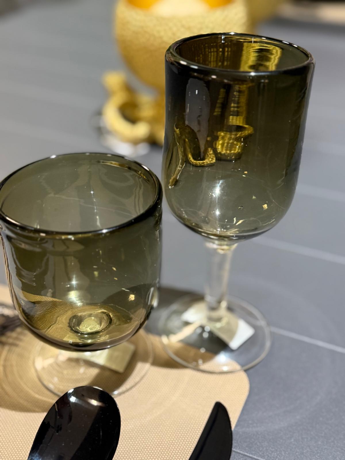 Elegante coppia di calici fume in vetro, ideali per la tua tavola estiva con stile raffinatezza, unisce lo stile moderno al design classico dei bicchieri per un risultato mozzafiato