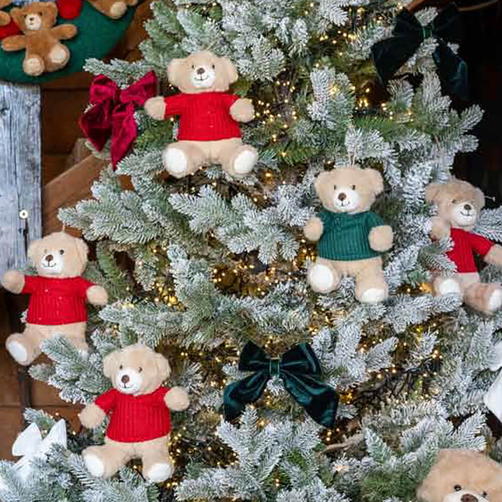 la Collezione Abbracciami di L’Atelier 17 racchiude tutta la dolcezza del Natale in un set composto da quattro orsetti decorativi alti 15 cm, realizzati in morbido peluche beige. Ogni orsetto indossa un delizioso maglione a maglia grossa in due varianti colore – rosso e verde bosco – che donano un tocco tradizionale e accogliente.