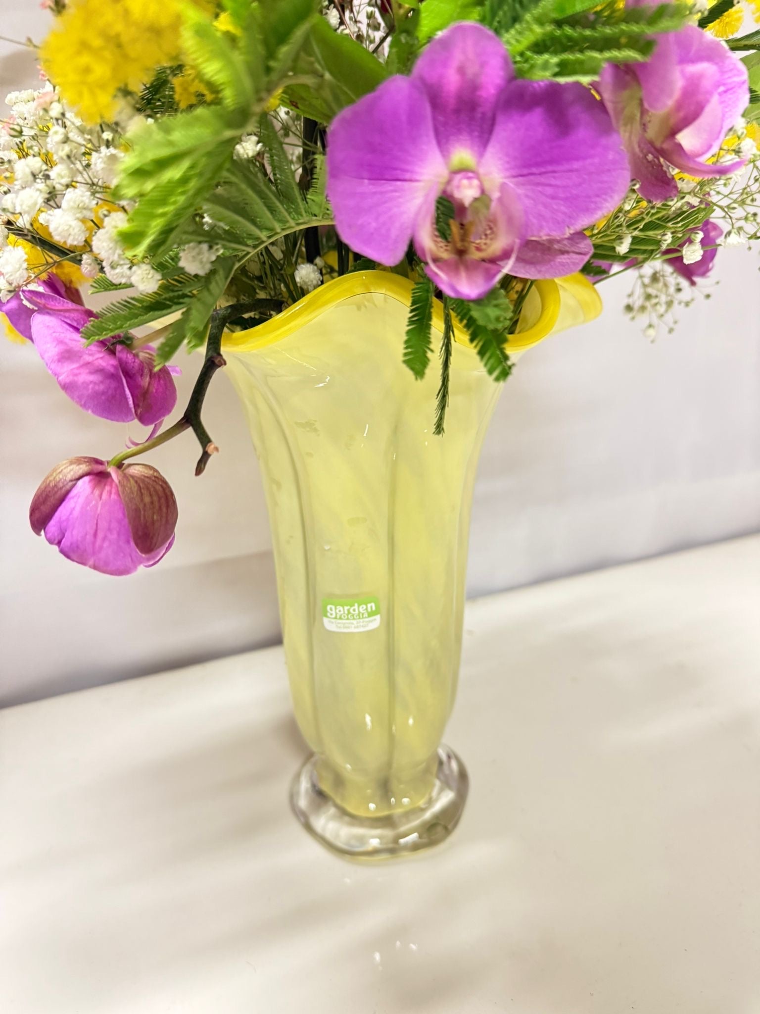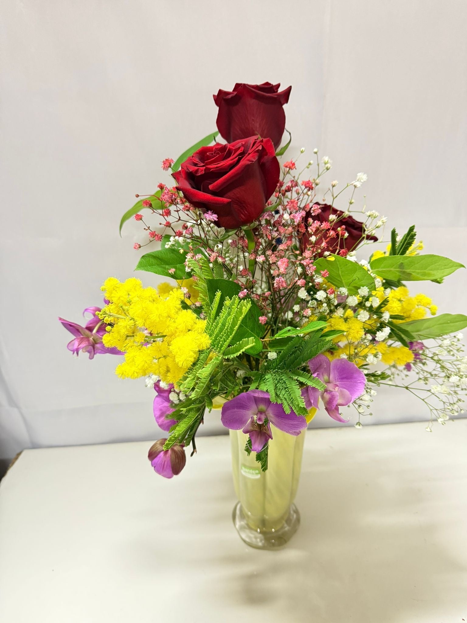 Bellissima composizione con rose e fiori mix in vaso edg, un regalo unico e romantico per un pensiero speciale